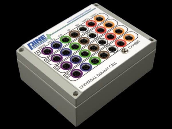 This universal dummy cell offers four separate networks which represent the extremes encountered during routine aqueous voltammetry experiments.